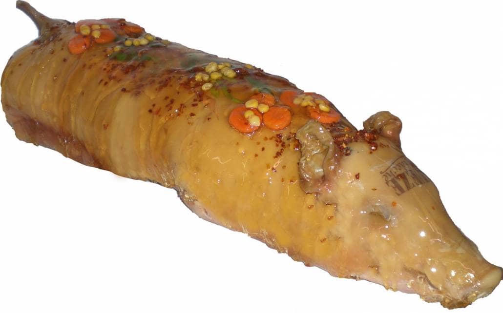 Mets aux saveurs subtiles, les porcelets sont fabriquées uniquement en fin d’année, issue de porcelet entier, puis désosser, mariné, et farci à partir d’une préparation maigre constituée de longs morceaux (appelés lèches) et d’une fine farce , ils sont décorés façon charcutier, puis coupés en deux pour vous garantir fraicheur et présentation optimale.