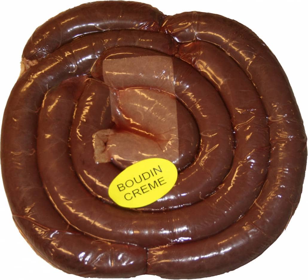 - Le boudin de à la crème est préparé à base de sang et de Gras de porc, de crème, et d’œufs, moelleux a souhait !
